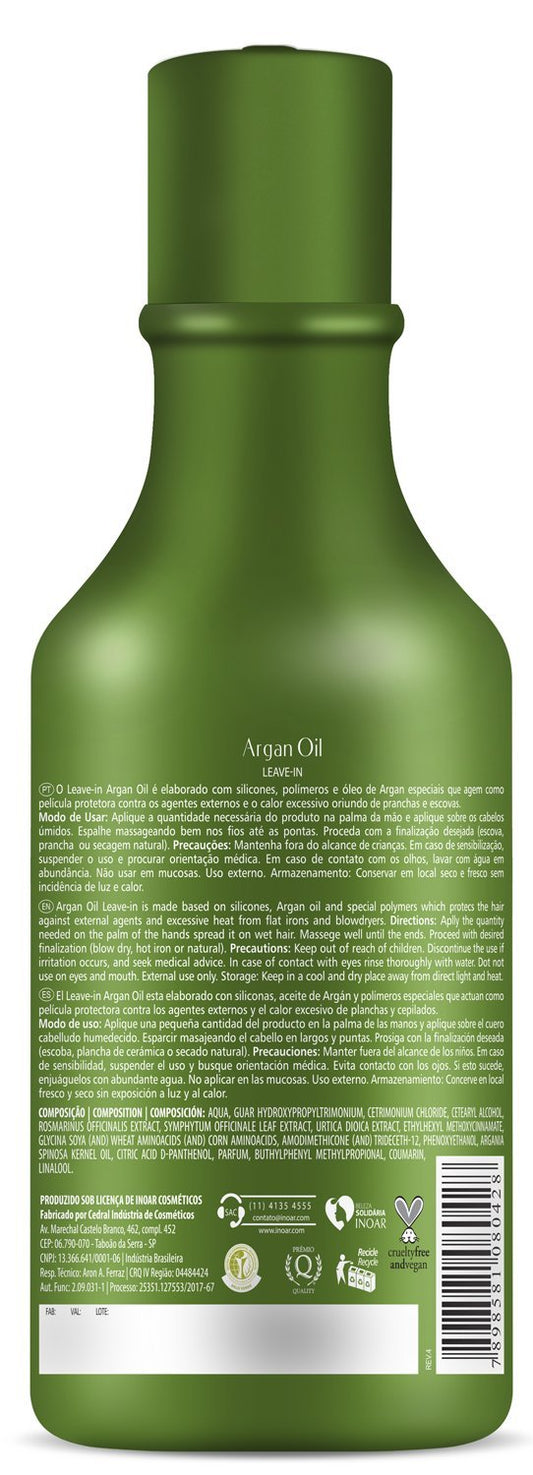 INOAR - Argan Oil Leave-in for Strengthening, Frizz Control, Adds Shine, Argan Oil, Leave IN Treatment, Repair Dry Damaged Hair, Vegan Hair Product, Cruelty Free Haircare for Men and Women (8.45 oz)